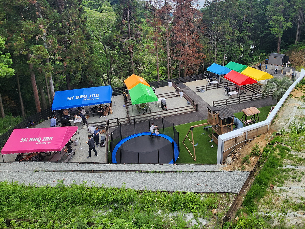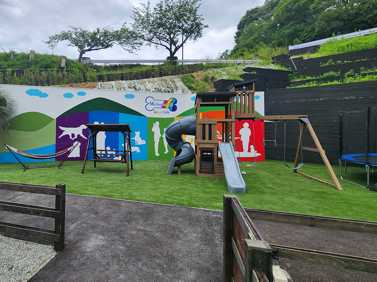 ワンちゃんと一緒に楽しめる専用区画はもちろん、お子様連れでも楽しんでいただけるよう遊具エリアもあります。
